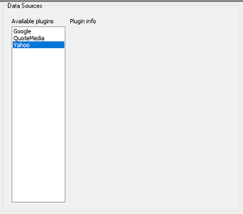 The plug-ins settings page shows the list of available plug-ins and their properties. Currently, only datasource plug-ins are supported. The selected data source plug-in will be used when downloading the data.